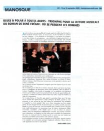 « La lecture a suscité une grande attention du public tant la tension du livre de René Frégni a été forte. Une belle ovation a salué ce spectacle porté par la voix de Paul Bruno, toute de rondeur et de personnalité, et la musique diversifiée d’Elodie Funès.